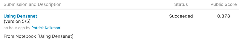 One hour after submitting the notebook, Kaggle showed the score, which was 0.703 as expected.